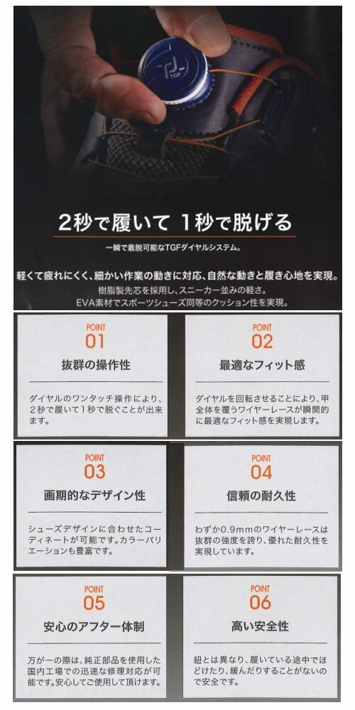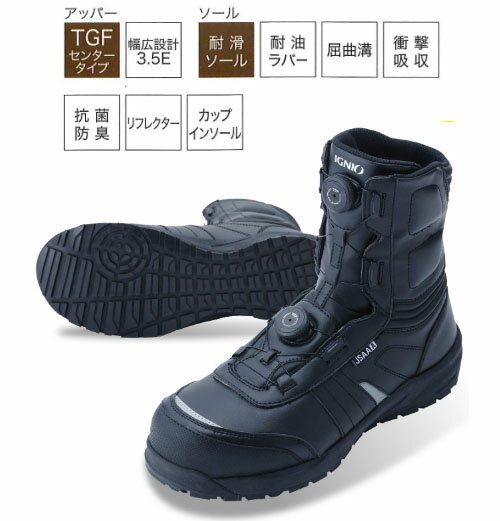 JSAA(日本保安用品協会) A種合格品仕様カラー:ブラックサイズ:26.5cm重量:490g(26.0cm/片足)TGFセンタータイプ幅広設計:3.5E耐滑ソール耐油ラバー屈曲溝衝撃吸収抗菌防臭リフレクターカップインソール材質アッパー:合成皮革ソール:ゴム底※メーカー直送商品のため、代金引換のお支払いはご利用頂けません。