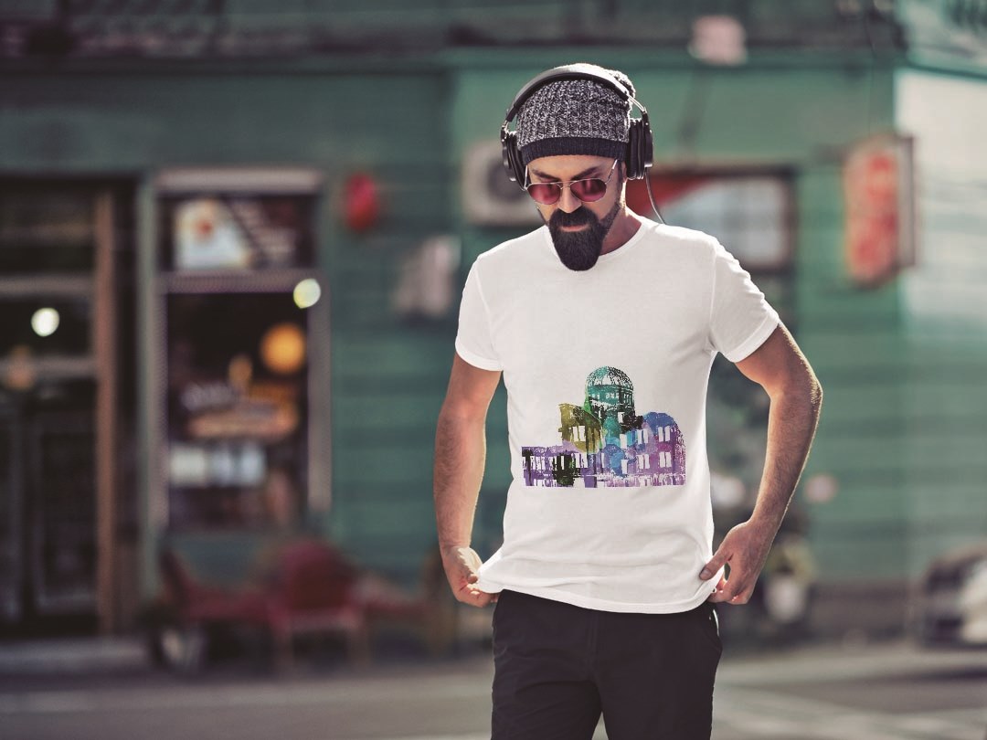 tシャツ メンズ 半袖 ホワイト グレー デザイン XS S M L XL 2XL Tシャツ ティーシャツ T shirt 011672 建物 カラフル 景色