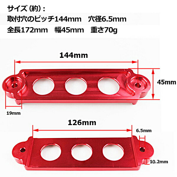 ■商品仕様 ■サイズ(約):取付穴のピッチ144mm 穴径6.5mm 全長172mm 幅45mm 重さ84g ■カラー:ゴールド/ブラック/ブルー/レッド/パープル/シルバ- ※本体のみの販売です。