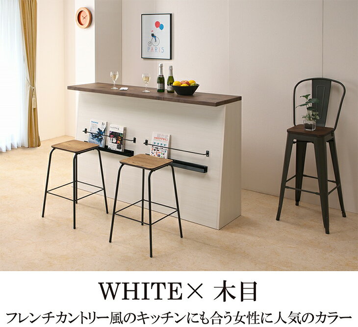 インダストリアル系のチェアとマッチするシックなブラックと、フレンチカントリー風のキッチンに合う女性に人気のホワイトの2色からお選びいただけます。