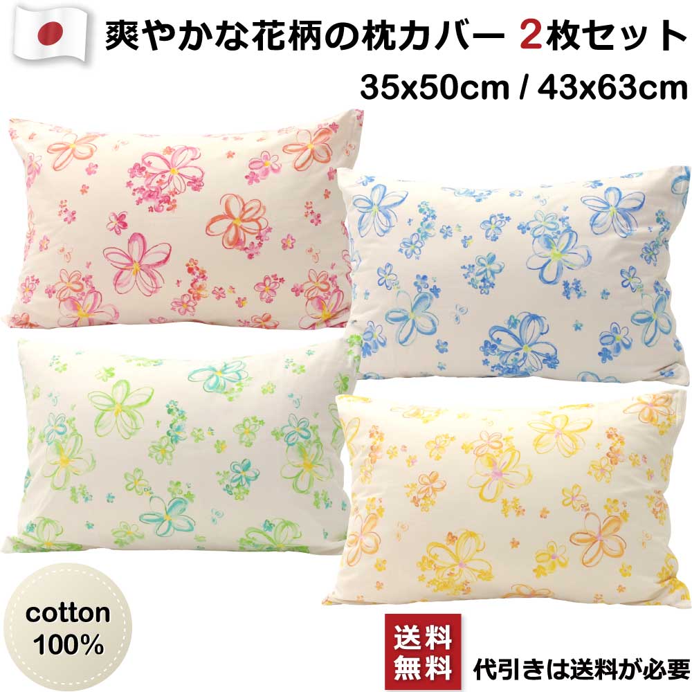 在庫処分 爽やかな花柄 日本製 枕カバー 2枚 セット 35×50 43×63cm 綿100% 35 43 63 50 43×63 綿100 綿 まくらカバー マクラカバー ピローケース 枕 まくら カバー 夏 夏用 子ども 子供 大判 ファスナー おしゃれ かわいい 1000円 ぽっきり ポッキリ 送料無料