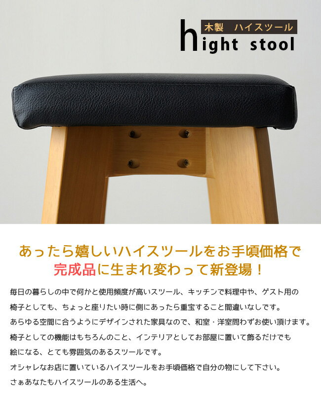 【金土日 pt大還元】バーチェア スツール 一人掛け バースツール シンプル 天然木 椅子 完成品 木製ハイスツール ハイチェア キッチン 木製 おしゃれ チェア ブラウン ナチュラル 木目 腰掛け リビング